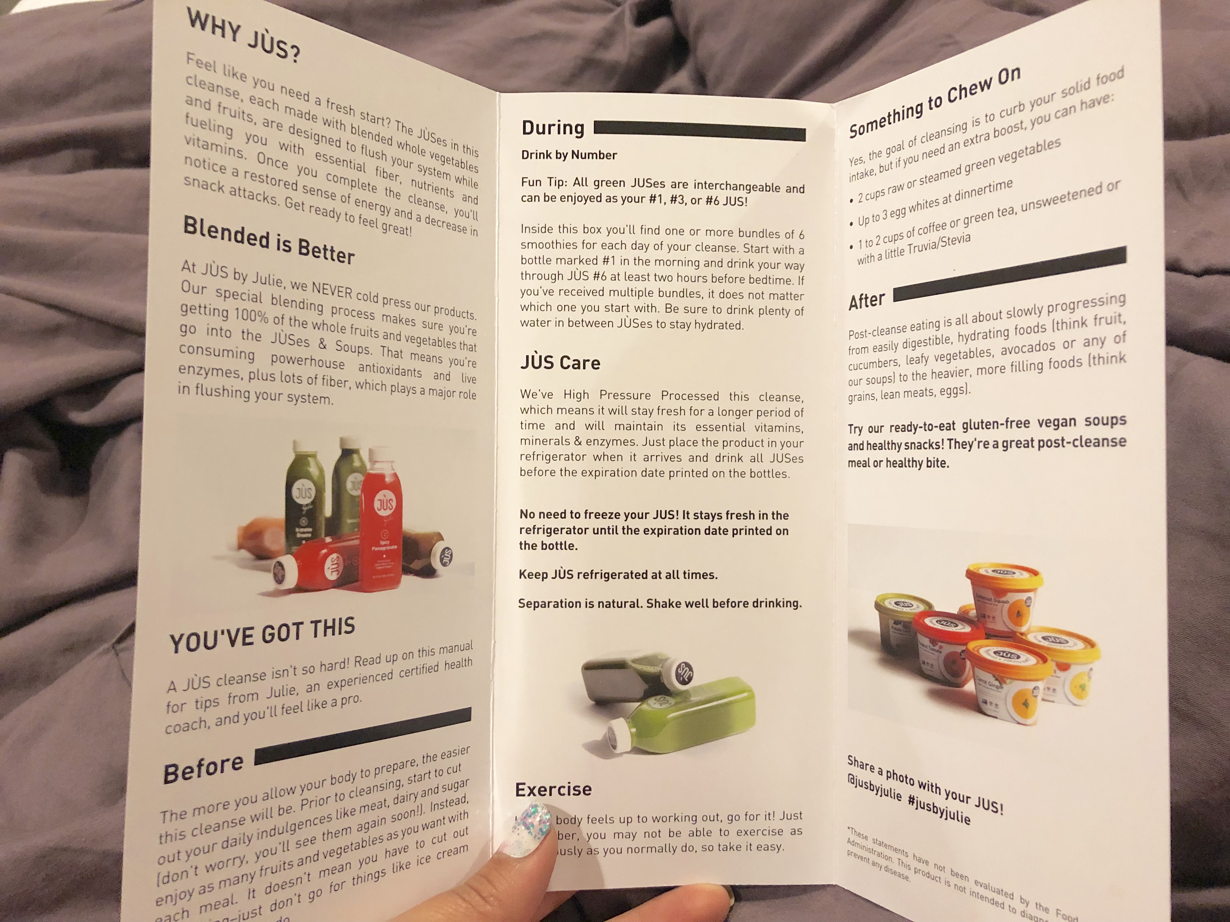 It’s been about a year that I’ve been in a giant rut with my eating and exercise habits. While health should be my top priority, I am falling for ALL the excuses; the busy-ness called life is winning the game! I purchased a Peloton at the beginning of the year, that’s fallen off. I hired a nutritionist, that’s fallen off. I am working more hours than ever. I’ve started a business “side-hustle”. I’m trying to keep up with my passion on social media with my YouTube channel and Instagram. Oh, and did I mention I’m raising my 4 year old on my own. My poor long distance relationship hardly gets any time (sorry John – xoxo)! Not complaining; just want to paint the picture. I find that I have no time for food prep or proper exercise. A few ladies at work were talking about doing a juice cleanse. I didn’t pay any attention to it, as I’m over all the fads that are out there. I’ve always been skeptical with juicing since there is a ridiculous amount of sugar that is consumed. It wasn’t until they actually started the cleanse that I gave it some consideration. My current state is I’m eating soooo much processed and fried food. It’s the convenience factor that got me in this rut. I need SOMETHING to help reset my cravings. I read a little about Jus by Julie and decided to give it a try!